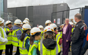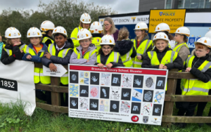 Yesterday, our Forensics team welcomed the pupils for a special visit to the site to unveil the artwork on the hoarding. During their visit, the students got a behind-the-scenes look at the project and met some of the team involved, a truly inspiring moment of connection. They also had the chance to ask questions about forensic work and the new building – everything from how investigations happen to what it’s like to work in the unit. One student even asked our Director of Forensic Services, Kay Hannam, about her role and whether she will be working alongside her team in the new facility.